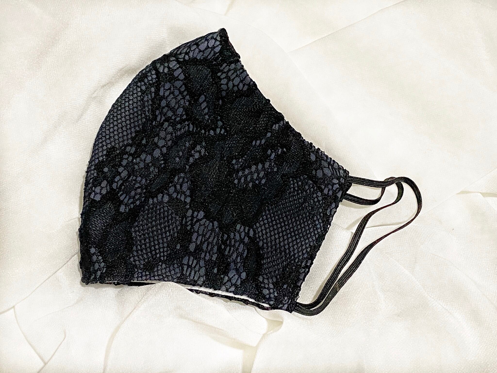 立体的で上品な高級レースを贅沢に使用、品がありお洒落としても使えるマスクに仕上げました。
