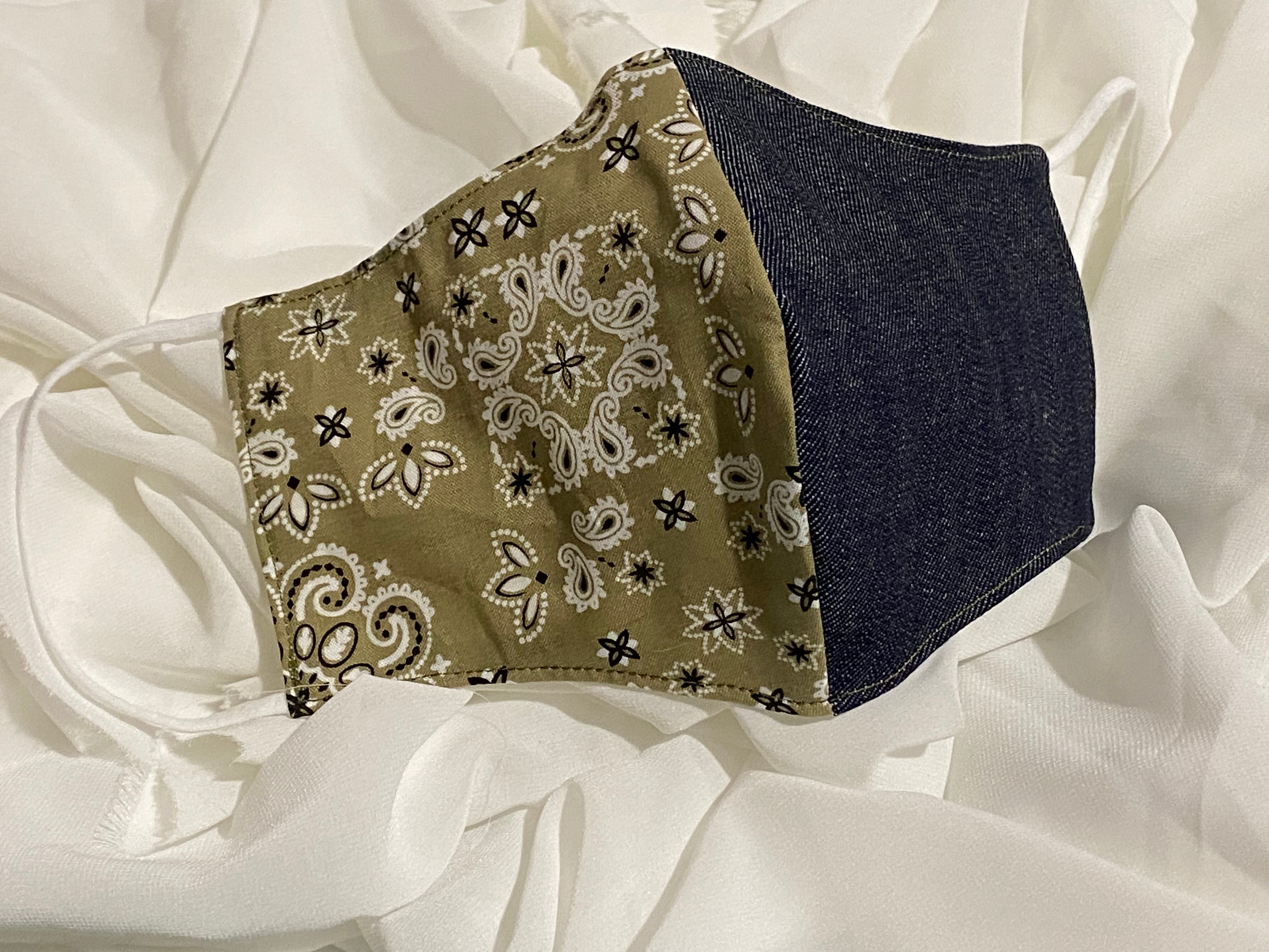 大人っぽい柄のバンダナ柄とデニムを組み合わせたデザイン性のあるマスクです☺️