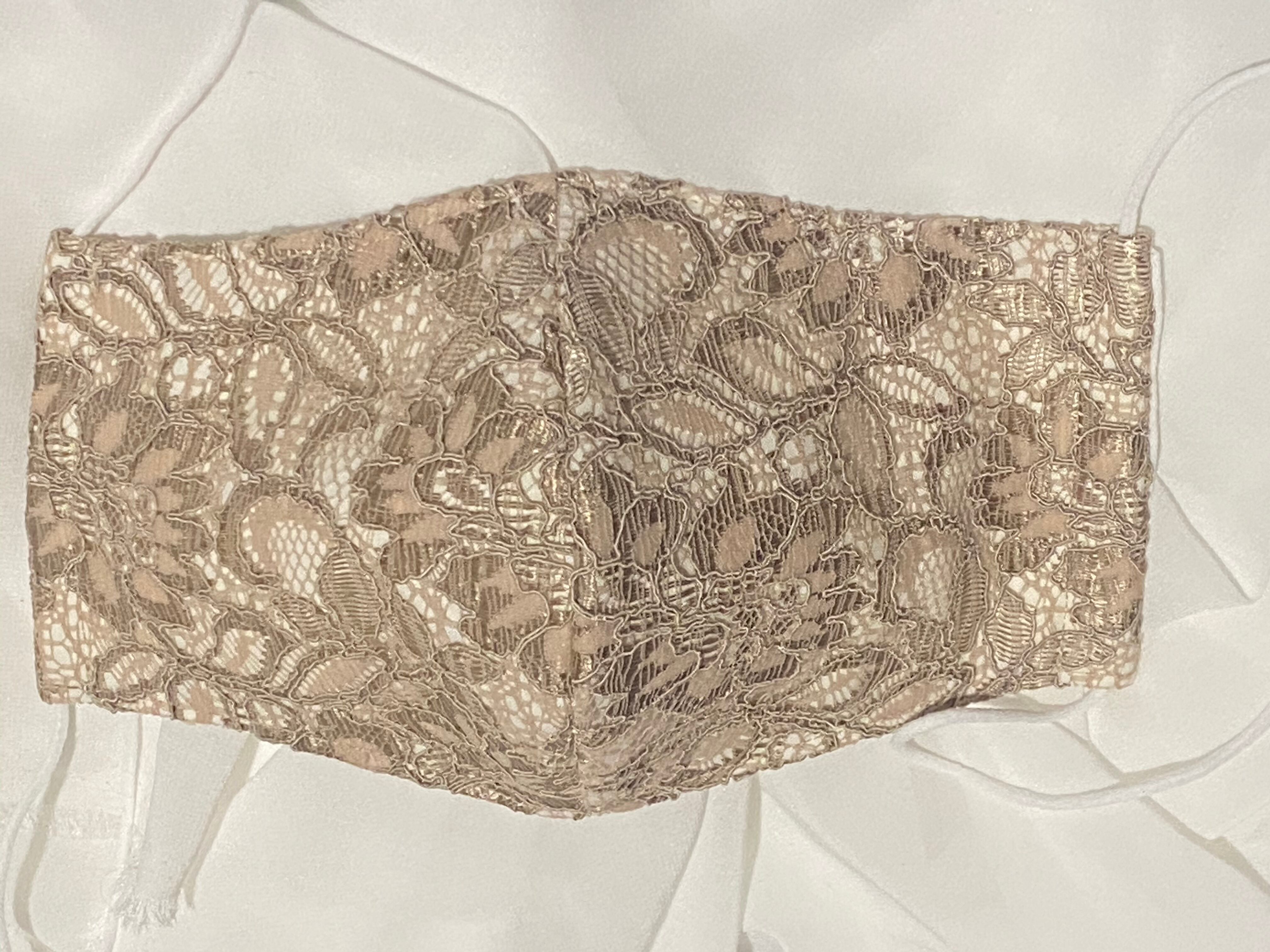 絶妙なカラーのブルーグレーで繊細かつ上品な高級レースを贅沢に使用、とても品がありお洒落としても使えるマスクに仕上げました。