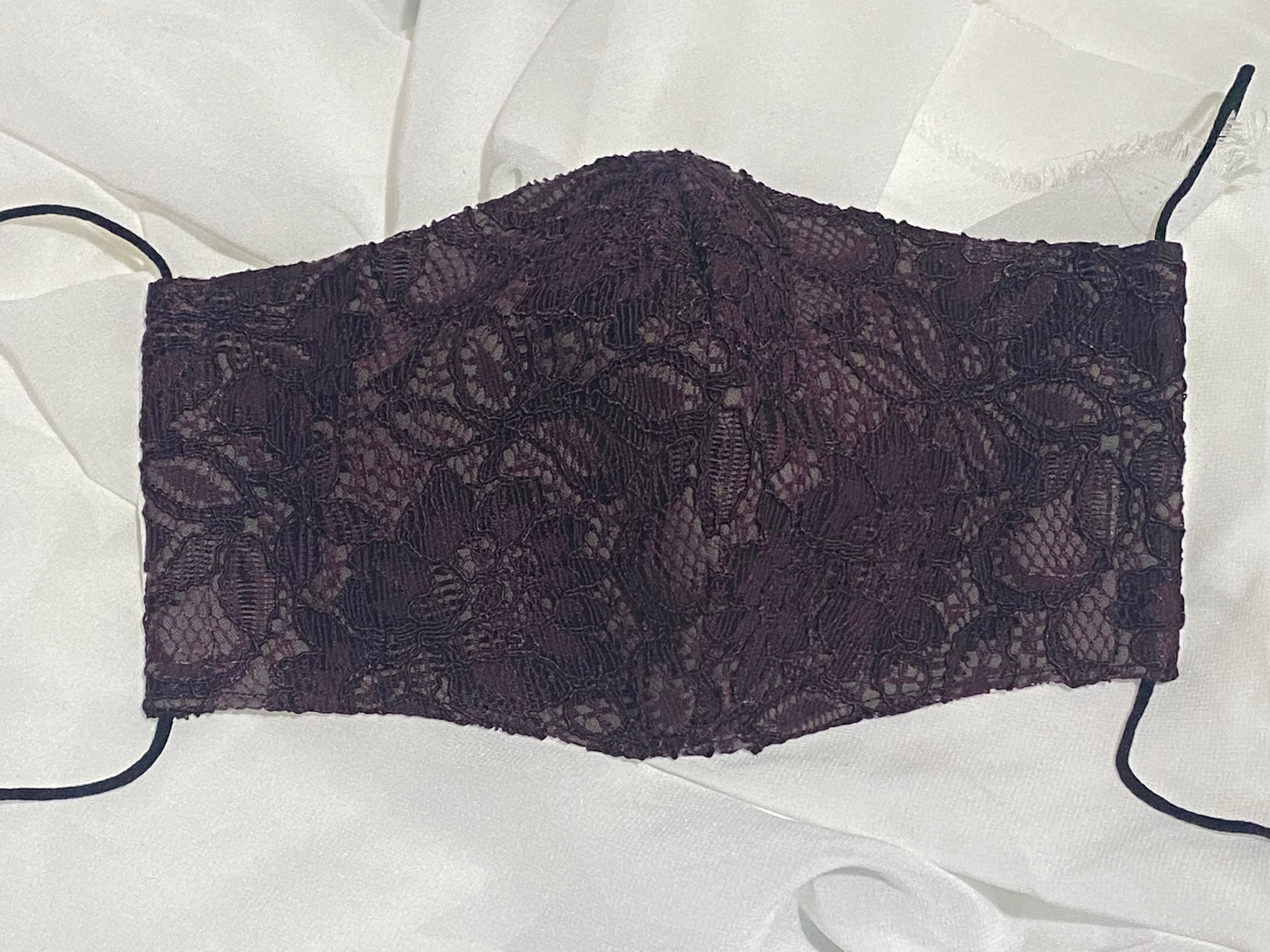 女っぽさが滲む大人ボルドーの繊細かつ上品な高級レースを贅沢に使用、とても品がありお洒落としても使えるマスクに仕上げました。