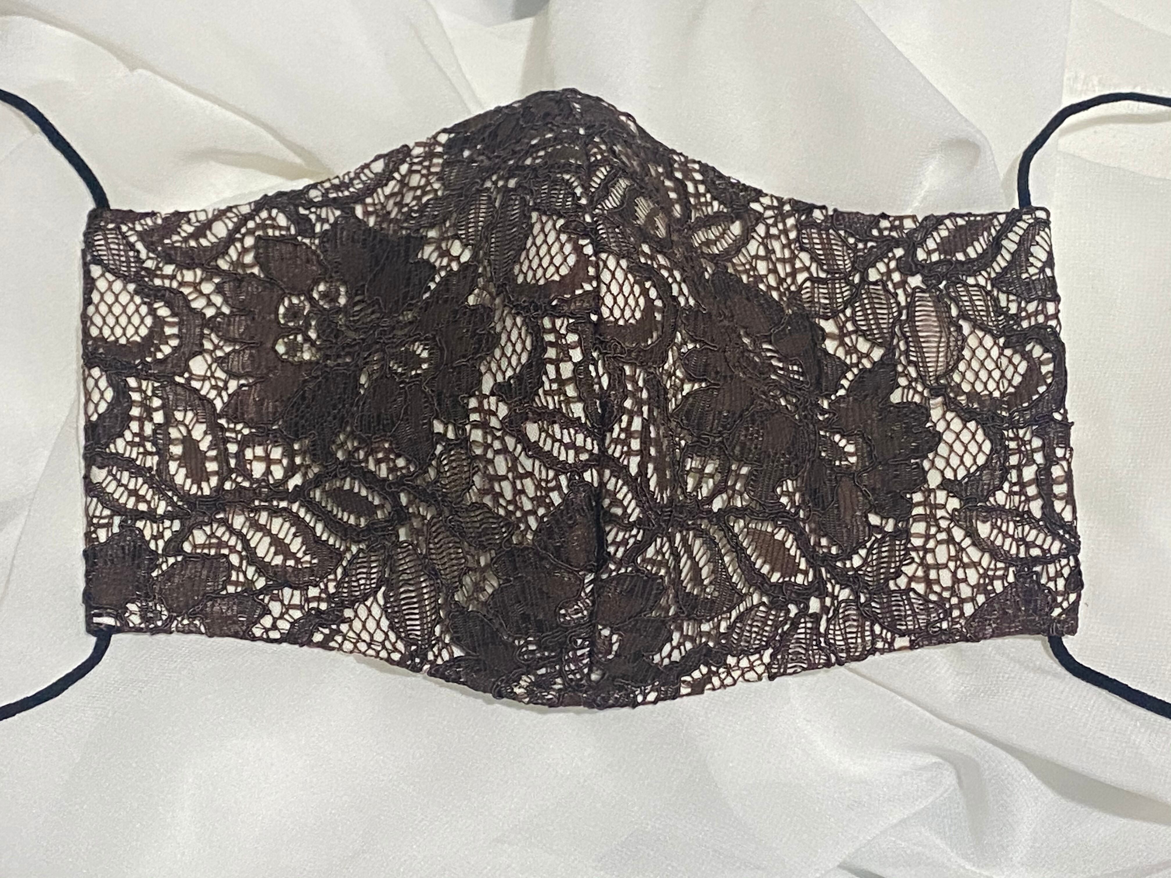 トレンドのブラウンで繊細かつ上品な高級レースを贅沢に使用、とても品がありお洒落としても使えるマスクに仕上げました。