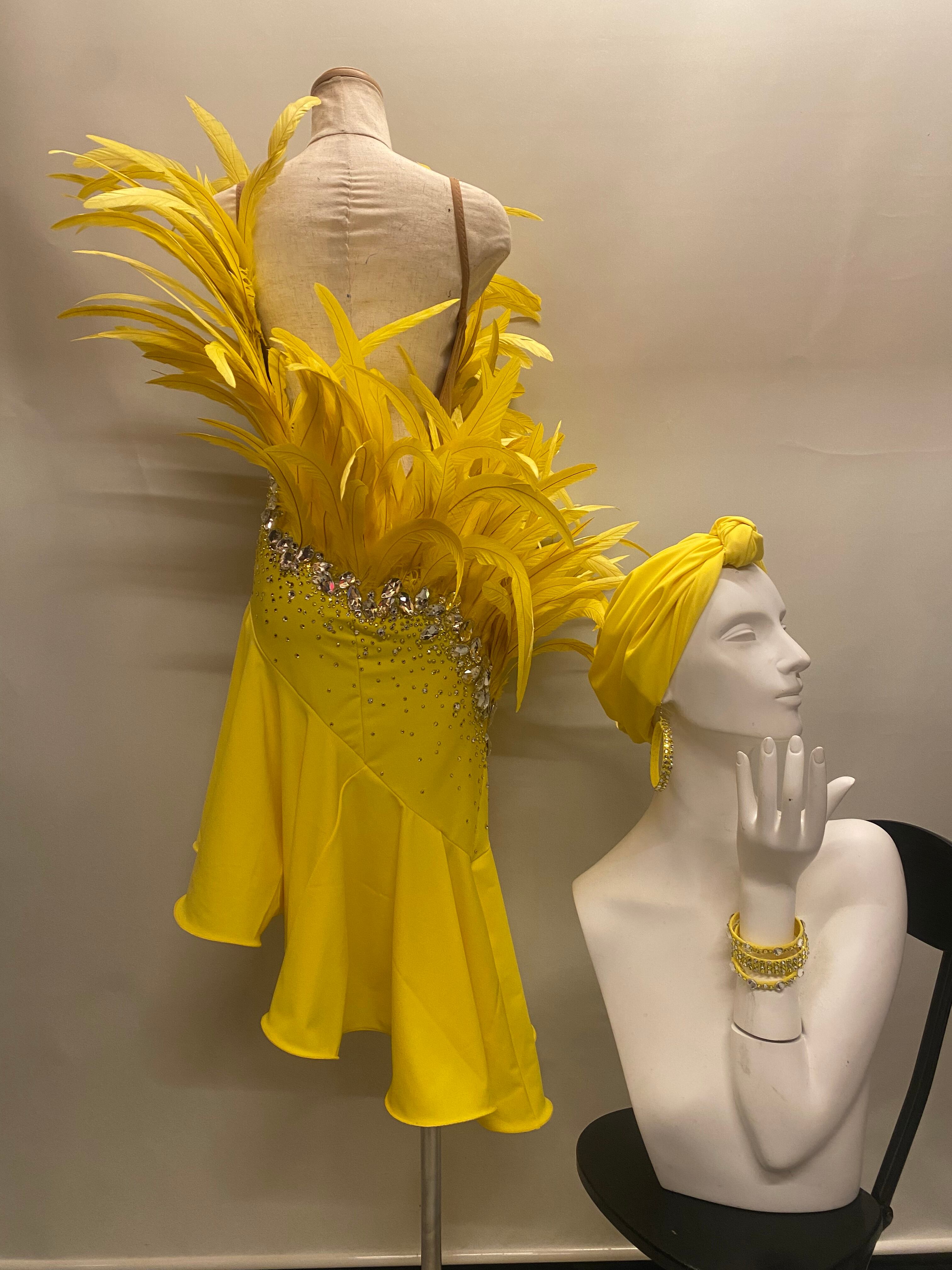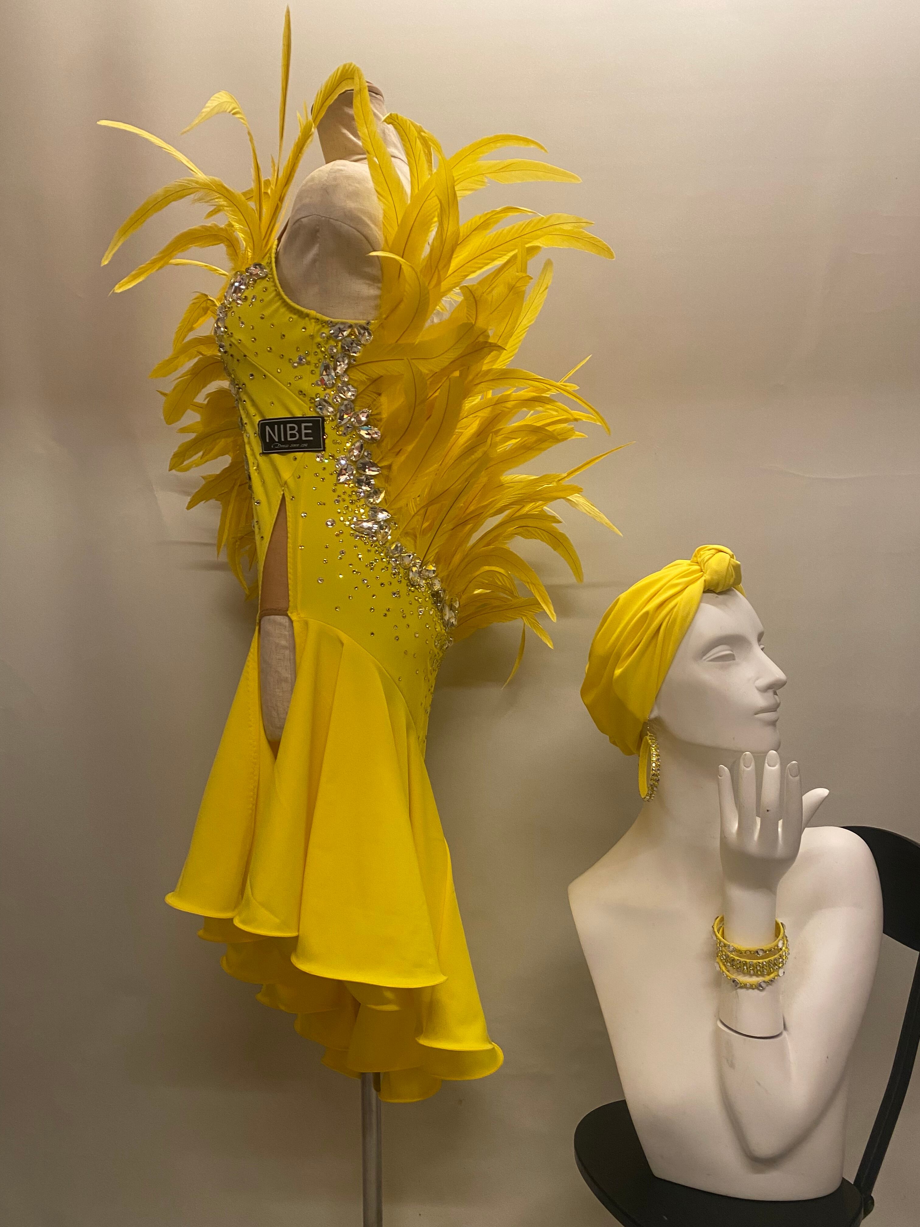このイエローフェザーラテンドレスで、自分自身のダンスを存分に楽しんでくださいね✨特別な瞬間にふさわしいアイテムです!