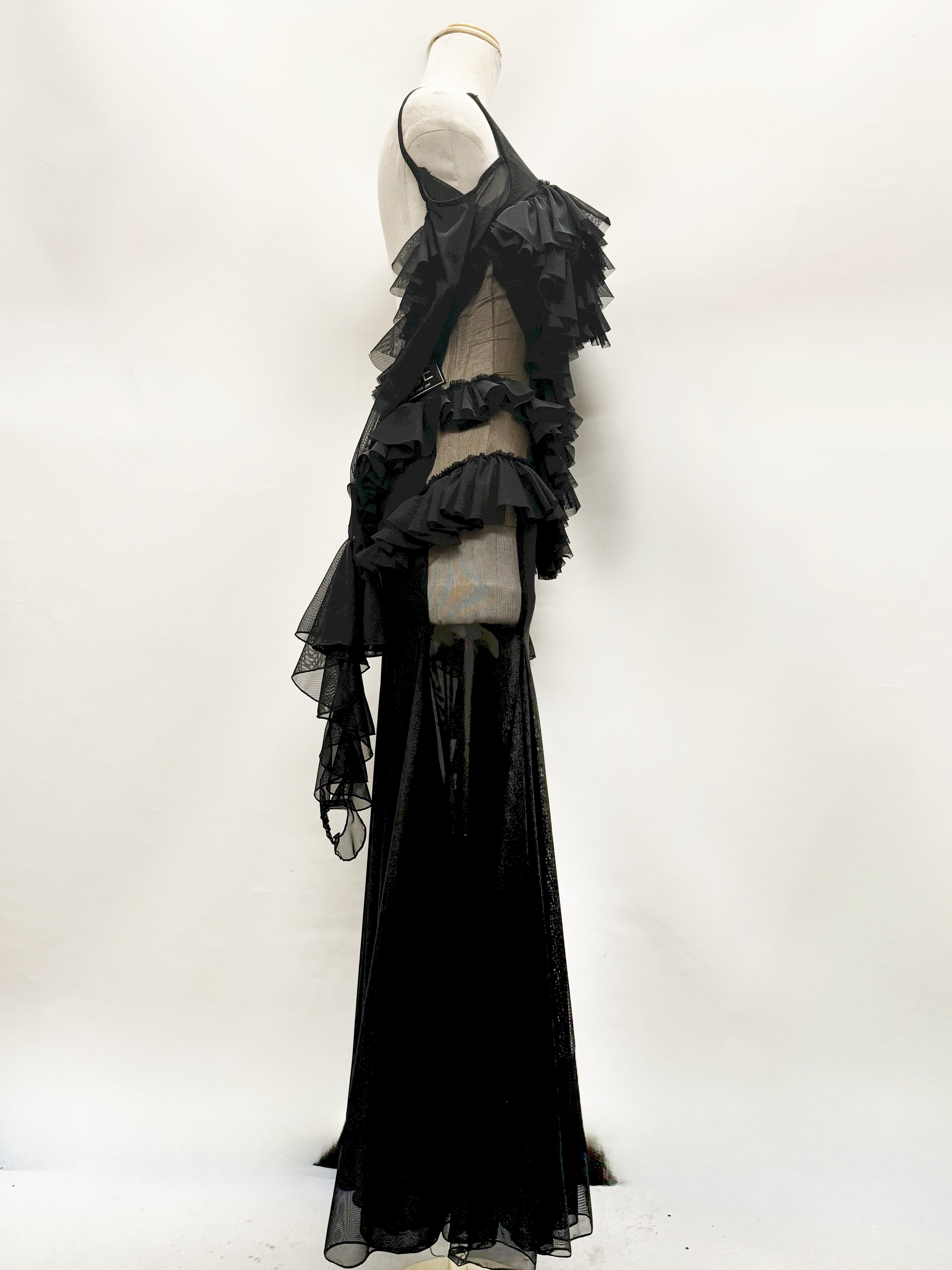 デザイン全体に施されたフリルがフェミニンでありながらも存在感を放ち、体の美しいラインを強調してどの角度から見ても目を引く一着です⭐️