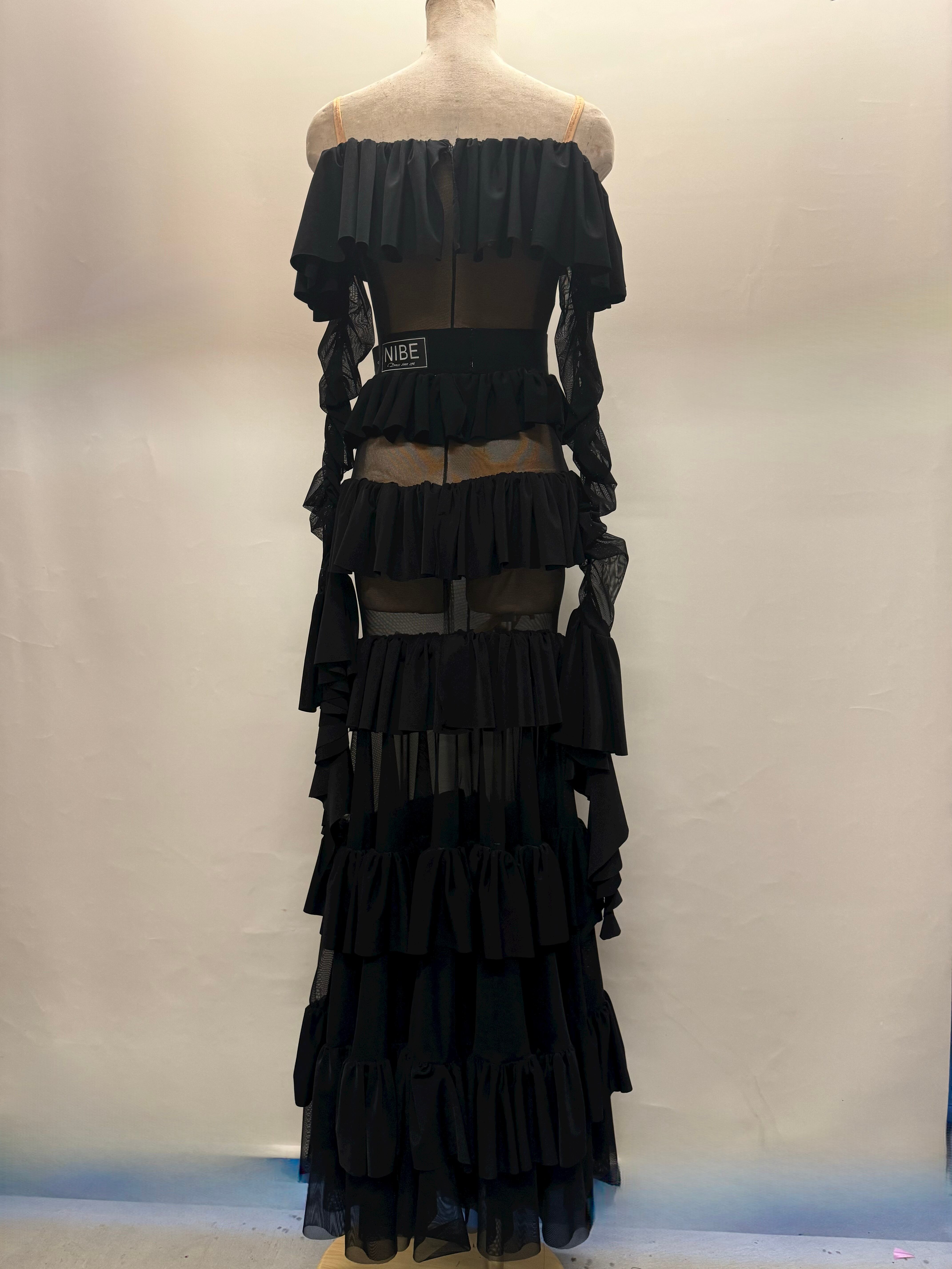 (販売)シースルーボーダーブラック パーティードレス